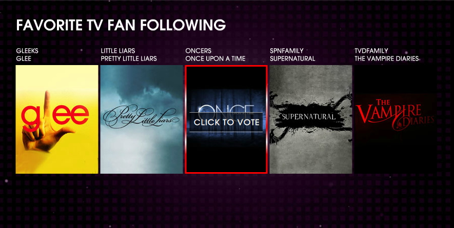 When you hover over OUAT on, let’s say Favorite TV Fan Following, it will show “Click to Vote”, Go ahead, click.